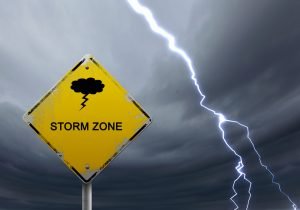 Hazards: Blinding lightning flashes, downed power lines, falling trees.