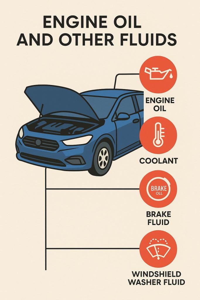 Transmission Fluid: Ensures smooth gear shifts; should be checked regularly.