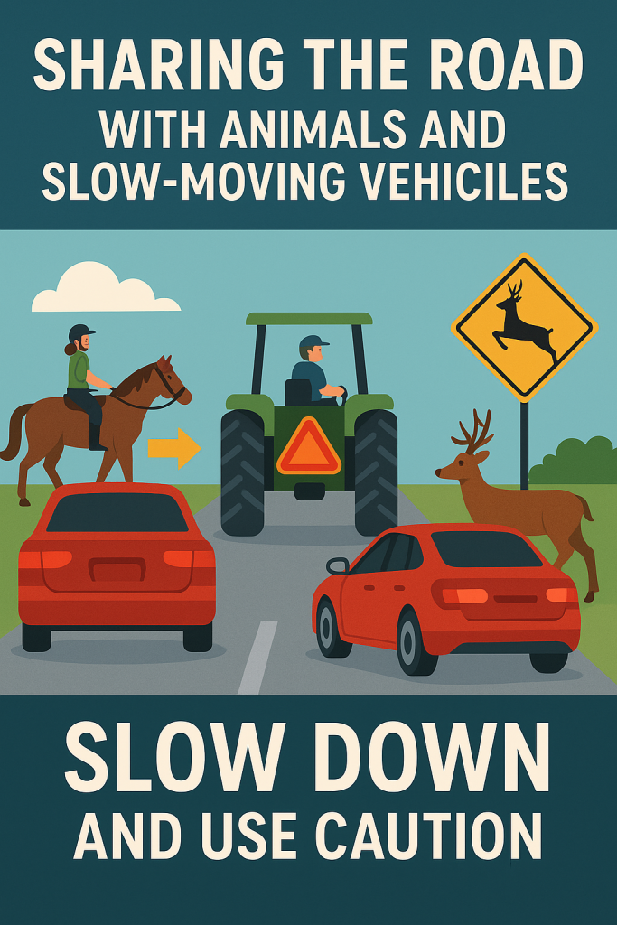 When sharing the road with animals or slow-moving vehicles, the key is patience, space, and caution. Stay alert and courteous to ensure safety for everyone on Utah’s roads.