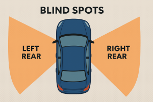 Blind spots are the hidden areas around your car that mirrors can’t cover. The only way to be safe is to turn your head and check them before changing lanes, merging, or pulling into traffic. Responsible drivers never skip blind spot checks.
